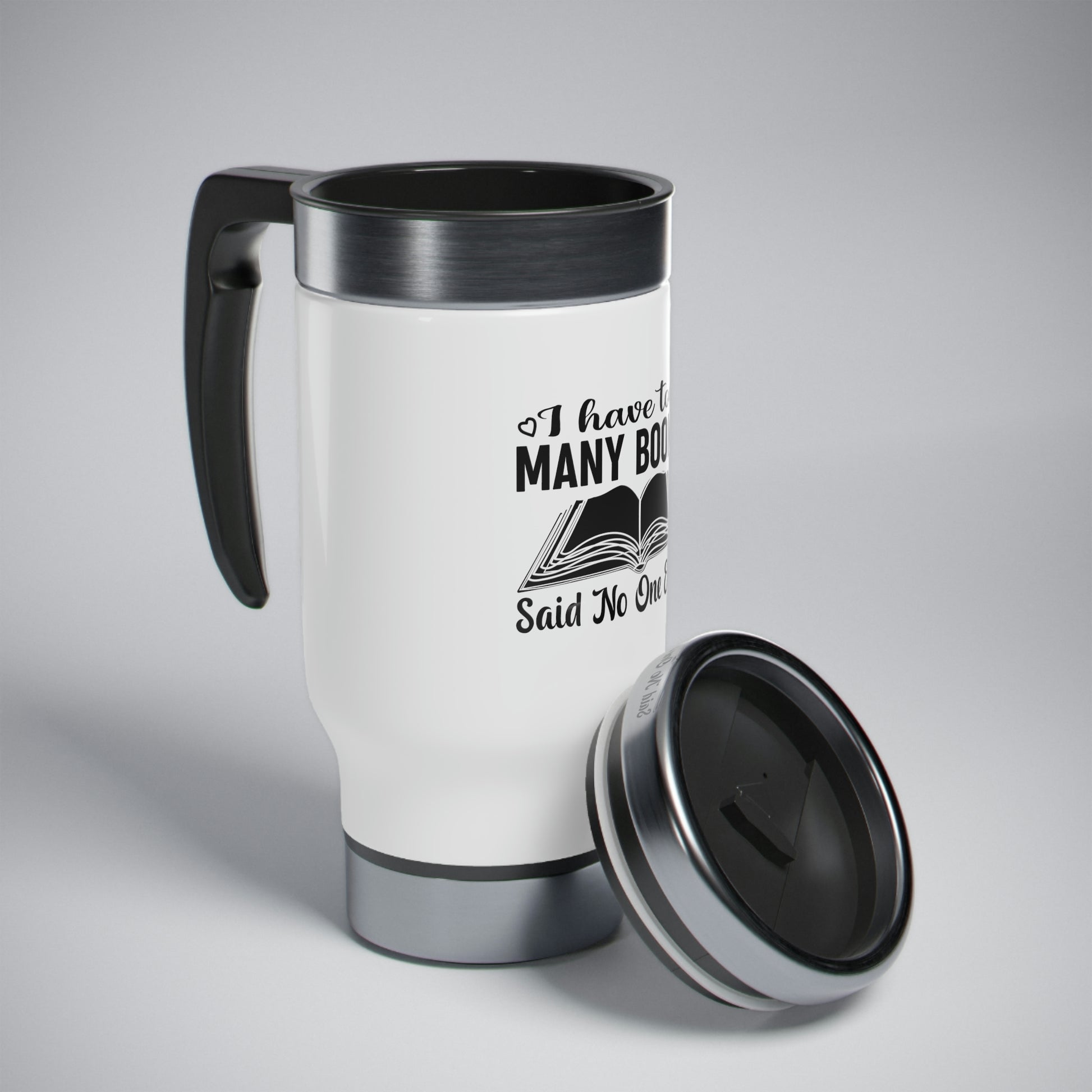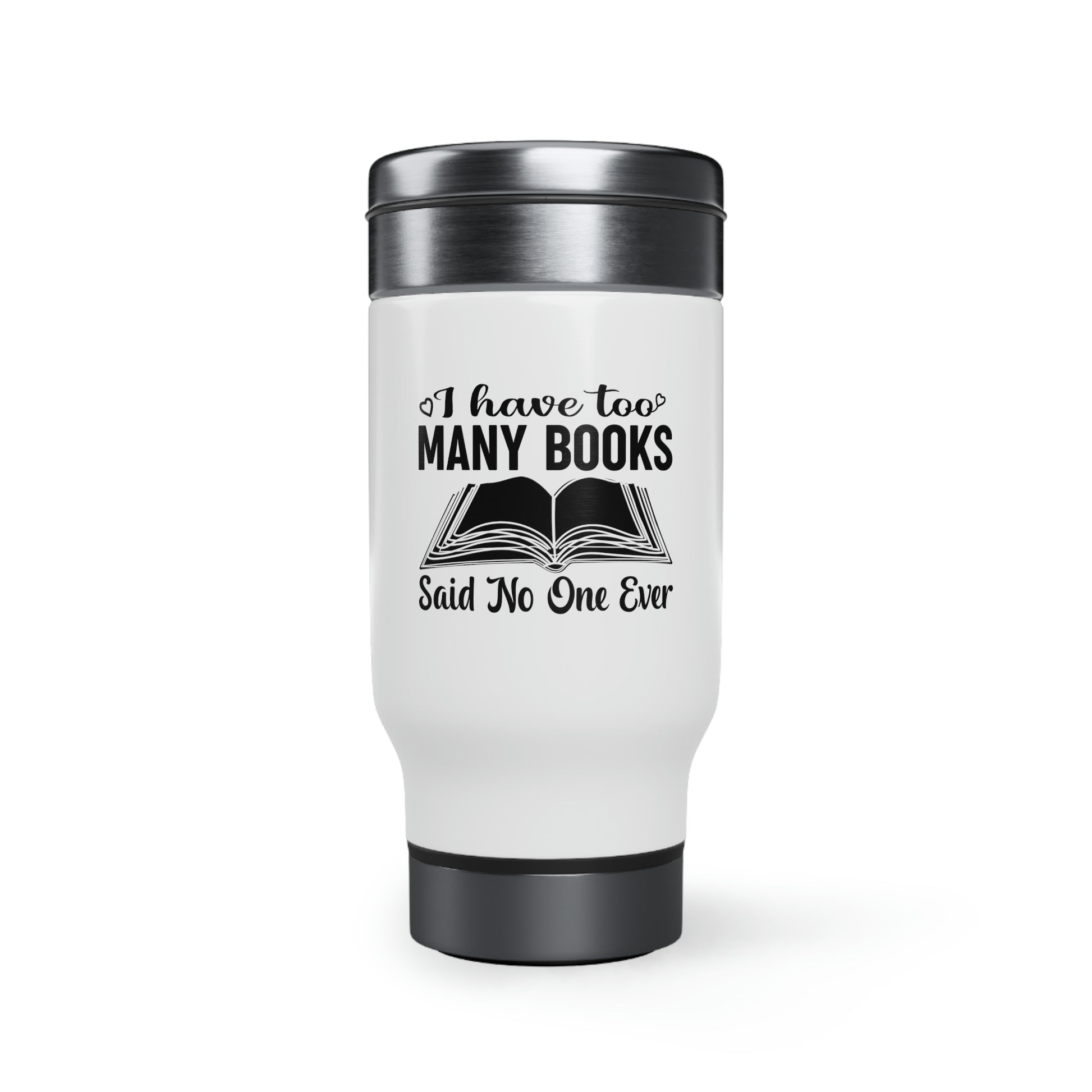 "I Have Too Many Books... Said No One Ever" Stainless Steel Travel Mug with Handle, 14oz
