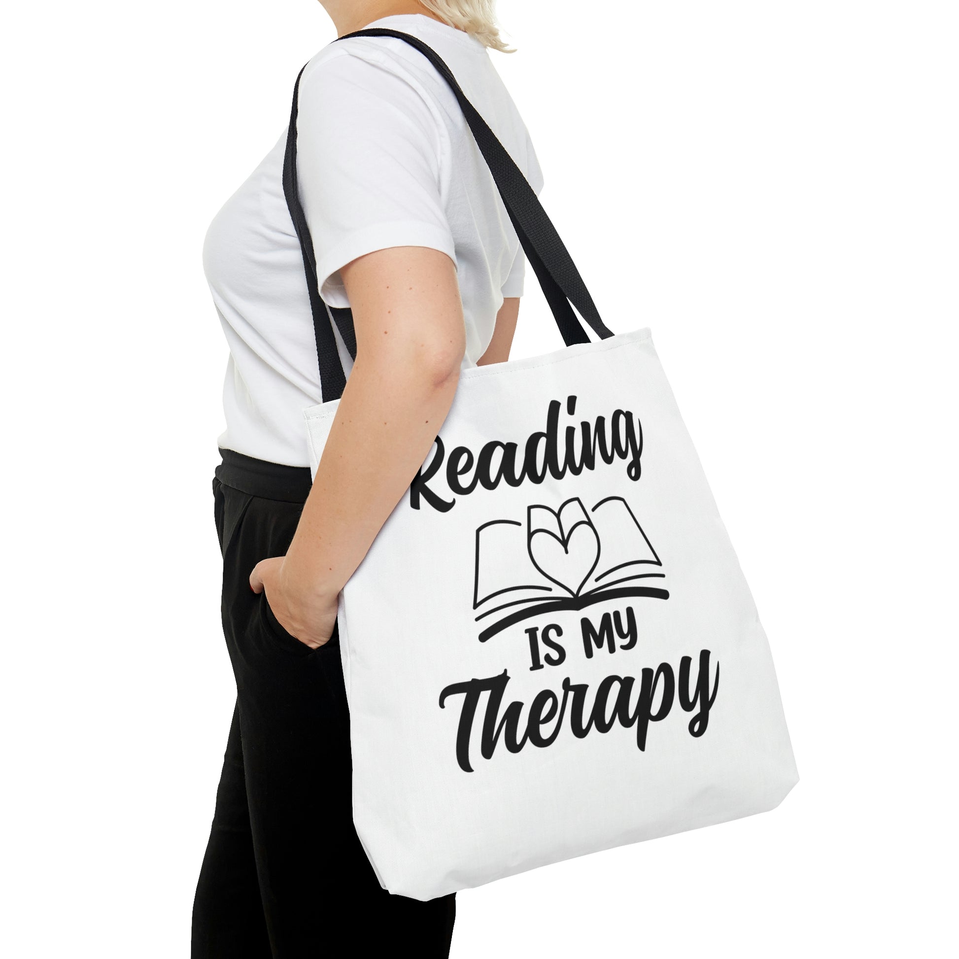 Featuring the "Reading Is My Therapy" design, this tote bag makes a bold statement about your love for reading and your appreciation for the therapeutic power of a good book. It's not just a bag, it's a symbol of your passion and your commitment to self-care.